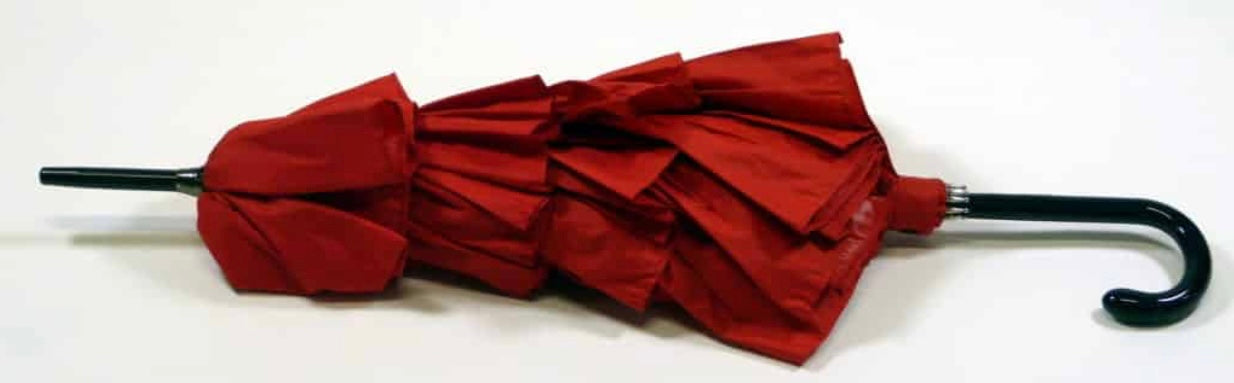 This is called the Cancan umbrella and for good reason! If there was ever an excuse to do a little happy dance when you possess such an extraordinary item this would be it. Protects you from rain, sun, and the glances of envious onlookers. This is the little sister to the full size version, also available from us!
