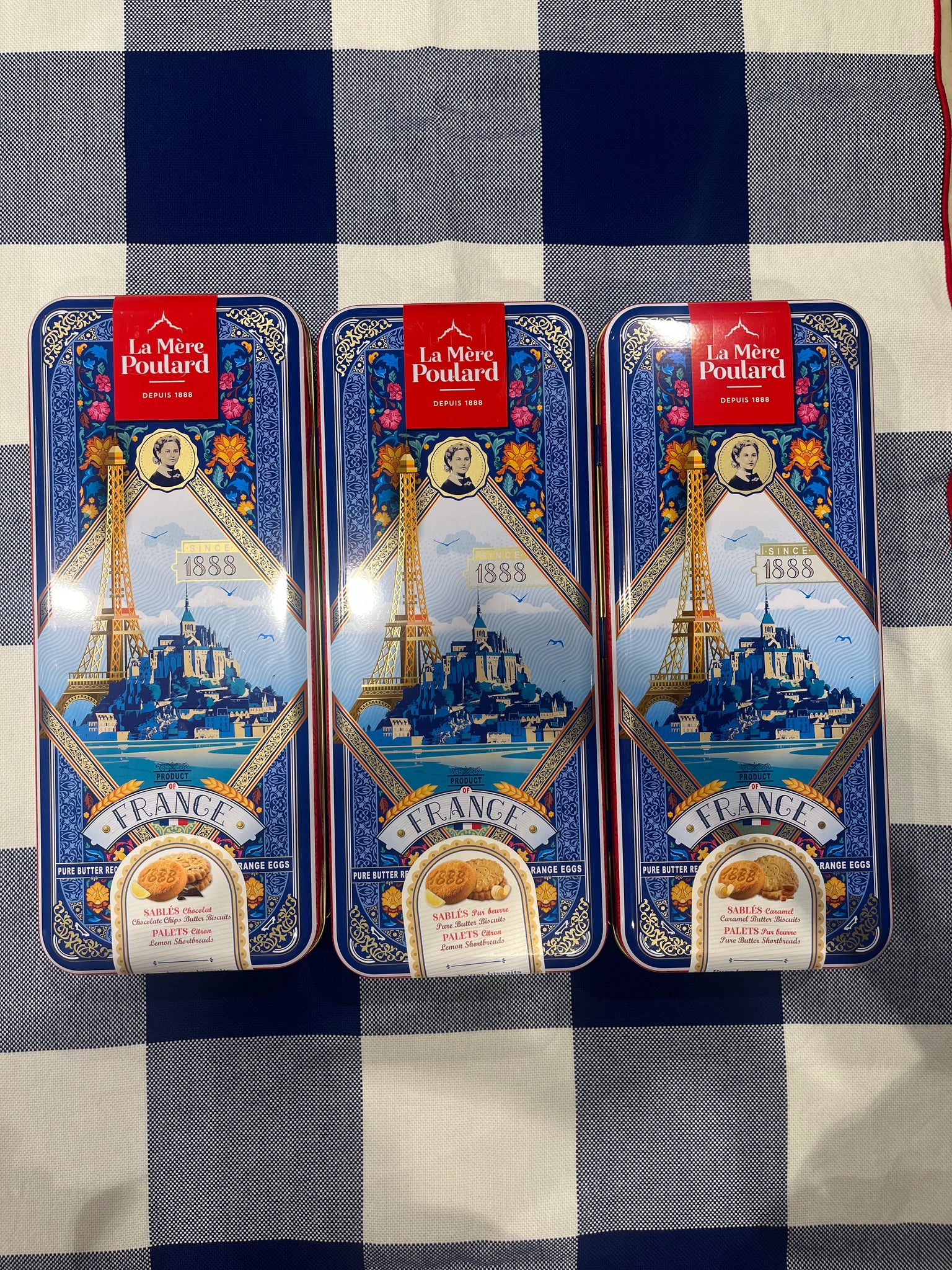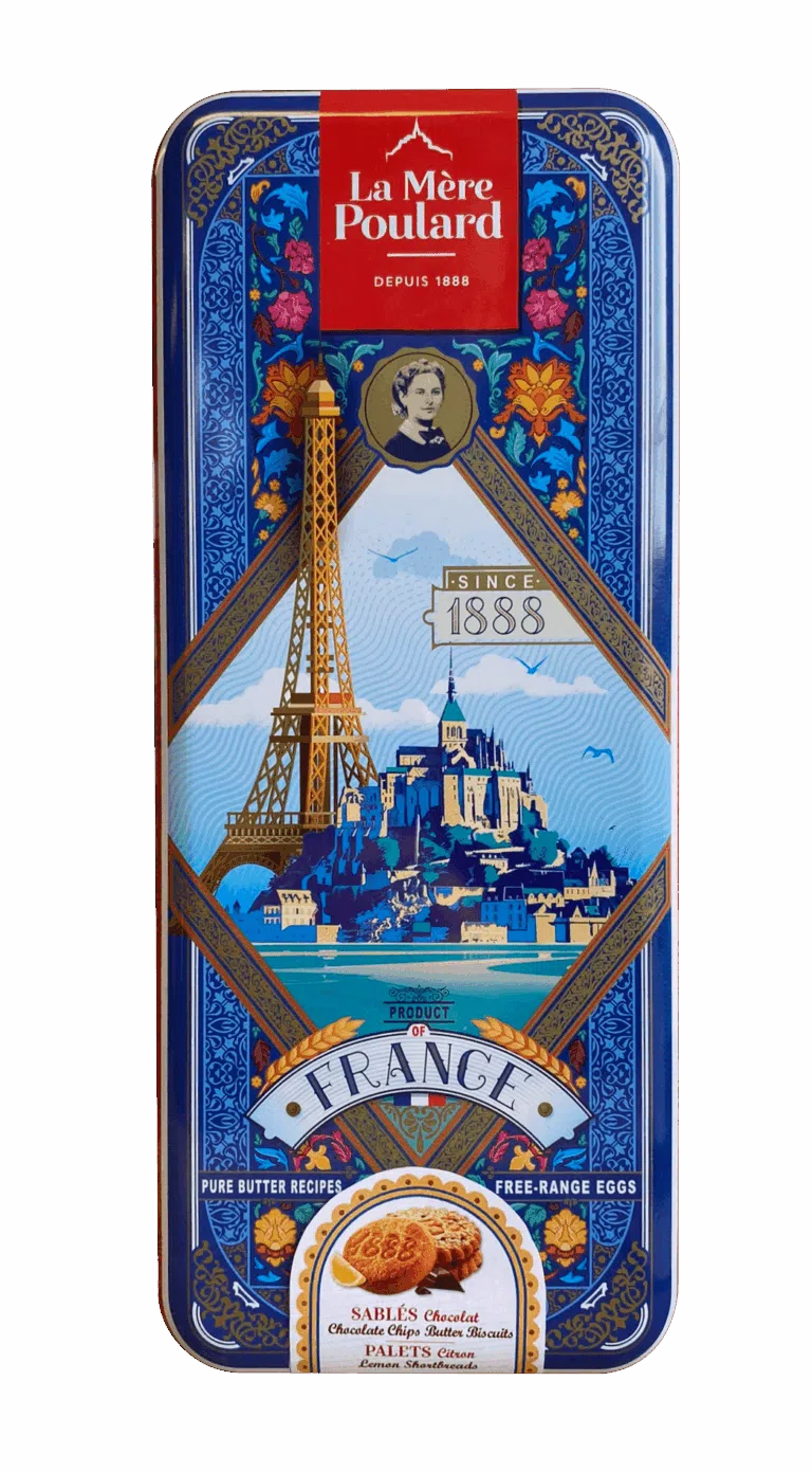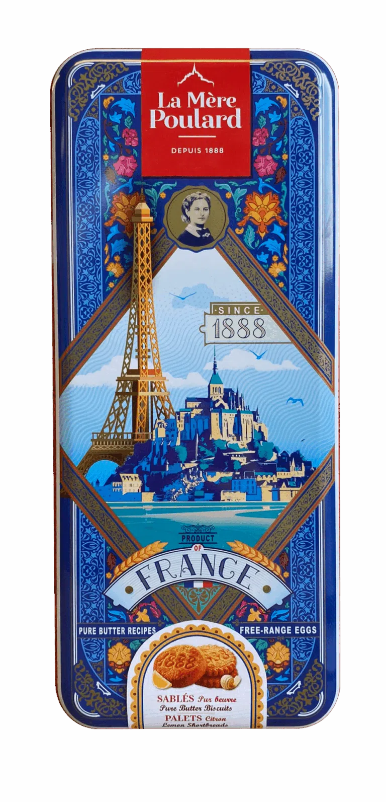 One of France’s greatest butter biscuit makers, La Mère Poulard, has created a stunning selection of biscuits made from free range eggs and pure butter in three delectable combinations, presented in a stunning tin box celebrating their French and more specifically, Mont St Michel origins.
