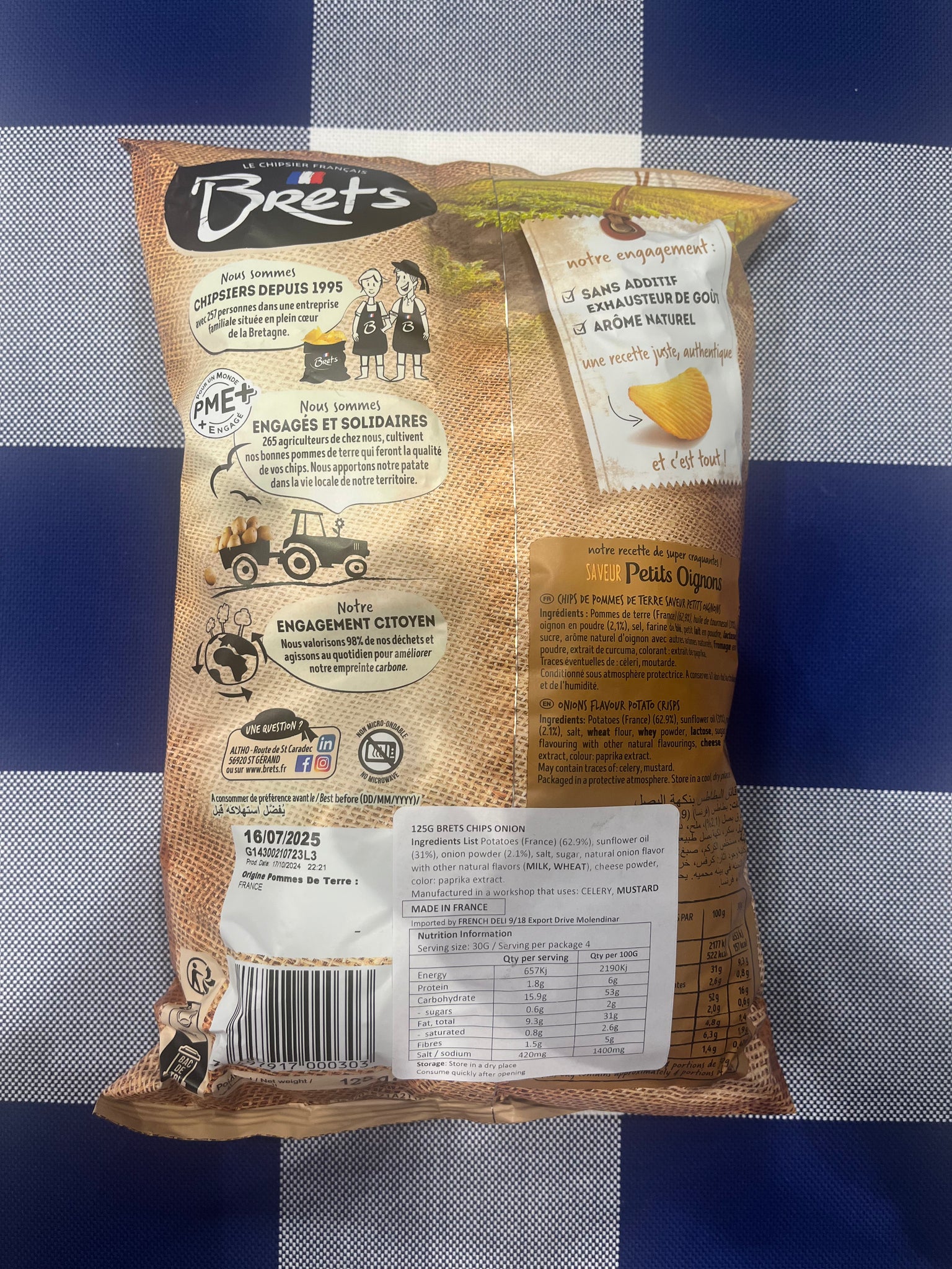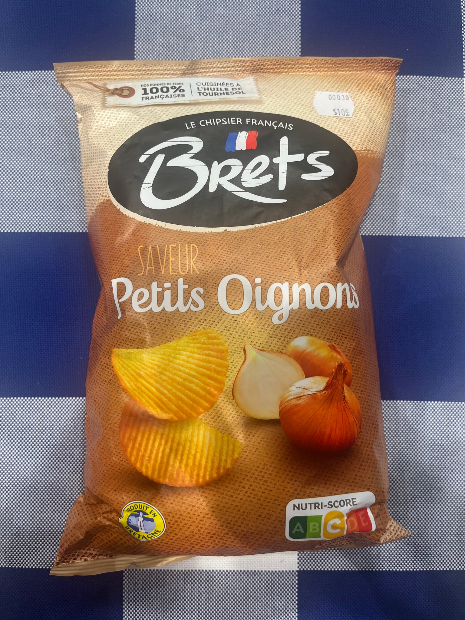 The Bret’s Petit Onions Chips (125g) are crinkle-cut potato chips made in Brittany, France. They stand out with their authentic sweet onion flavour, reminiscent of traditional French onion soup..