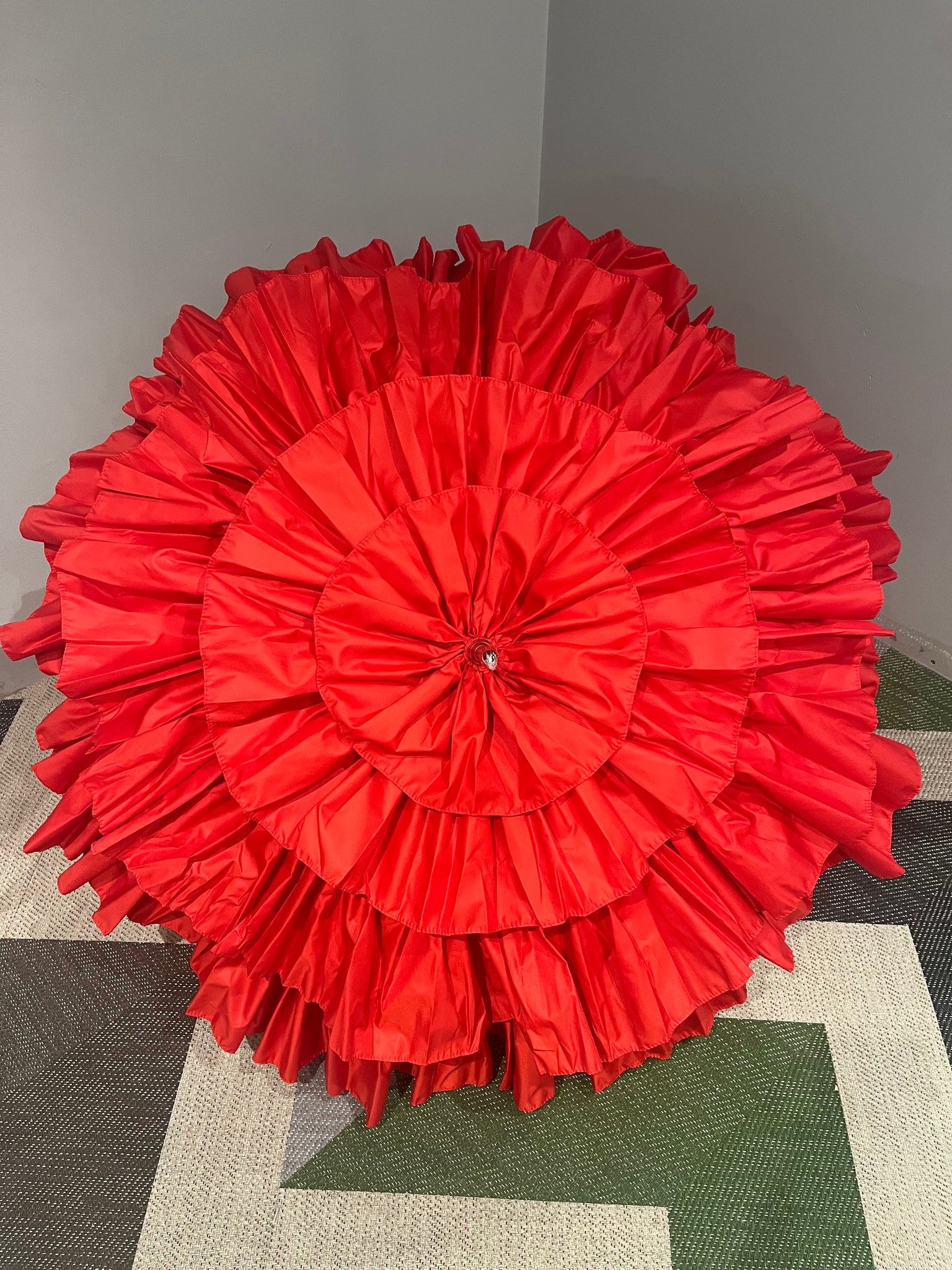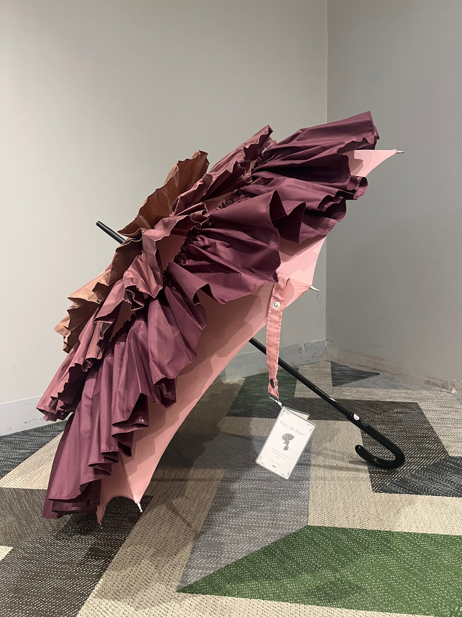 This is called the Cancan umbrella and for good reason! If there was ever an excuse to do a little happy dance when you possess such an extraordinary item this would be it. Protects you from rain, sun, and the glances of envious onlookers.