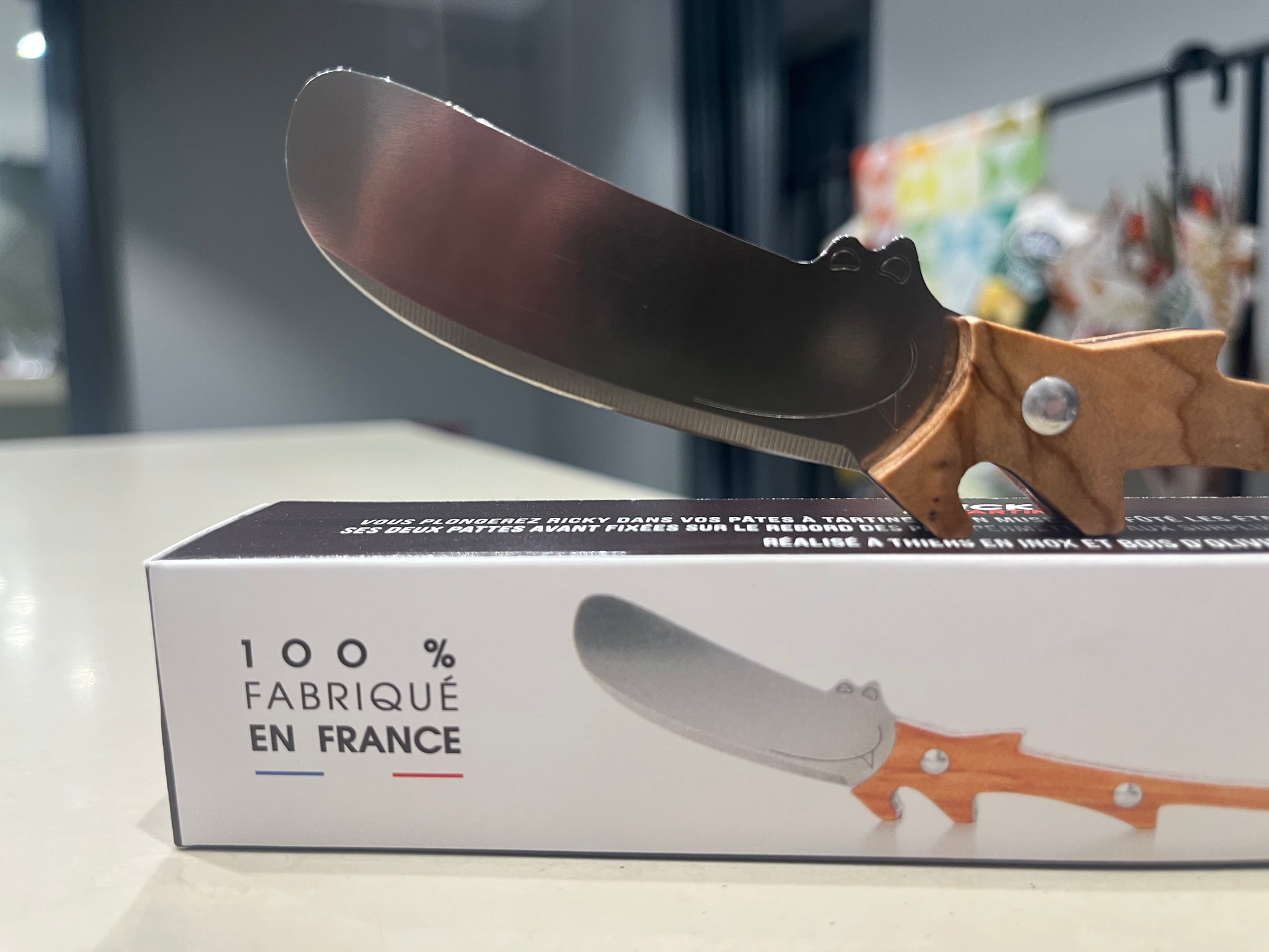 When Roger Orfèvre turned 100 years old in 2024 they created two joyful utensils to mark this auspicious occasion. One of these is this cheeky chappy… Ricky Tartine! The happy and hungry hippo is there to spread joy and happiness - whether it would be your favourite French jam, some lovely pâté or something just on the right side of runny from the cheese world, Ricky is here to help! Stainless steel blade with olive wood handle. 100% made in France.